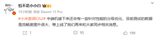 曝小米/红米中端机将分级优化性能 流畅度提升很大 【CNMO科技消息】2月14日,欧博有数码博主爆料称,小米旗下中端机接下来还会有一些针对性能的分级优化,流畅度提升很大,值得期待。 目前,小米和REDMI旗下的中端机型主要包括REDMI Note系列、REDMI Turbo系列以及小米CIVI系列等。虽然REDMI K系列定位为中端,但高端机型实际上已经接近顶级旗舰的水准。 现在,欧博娱乐小米和REDMI旗下多款机型已经推送最新的澎湃OS 2正式版内测。该系统引入了多项新技术,如“焕新存储管理2.0”、“级联带宽技术”和“自研微架构调度器”。这些技术的应用使得连续启动应用、通知启动应用以及重载游戏单帧功耗的表现都有了大幅提升。无论是电视、手机、手表还是平板,全生态设备都能享受到这种流畅体验。 具体来说,澎湃OS 2采用了全新的HyperCore澎湃内核,该内核引入了新的自研微架构调度器。从芯片微架构层面入手,通过解析指令流水线,实现了任务执行过程的透明化。在性能优化方面,HyperCore澎湃内核通过一体化调频机制,协同Cache和DDR资源的智能分配,大幅降低了CPU空转占比达19%。 此外,小米还特别强调其在存储管理和数据传输方面的改进。“焕新存储管理2.0”不仅提高了读写速度,还增强了系统的稳定性,减少了文件碎片化的可能性。而“级联带宽技术”则进一步优化了数据传输效率,确保设备在处理复杂任务时依然保持高效运作。 (责任编辑:) |
